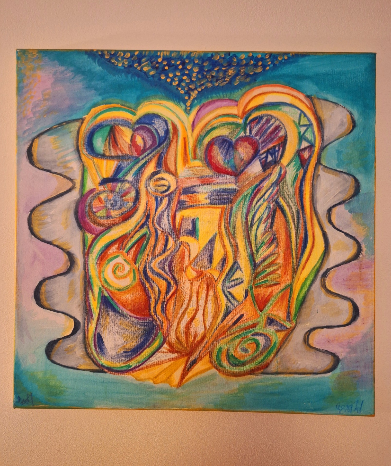 HARM9NIE VĔDOMI/ Acryl na podrámovaném plátnĕ 30x40cm/. ENERGETICKY PŮSOBÍ NA 4 a 8 čakru/ sdce a napojeni na boha a vesmír/ UKLIDŇUJE A ZPŮSOBUJE POCIT BLAHA.