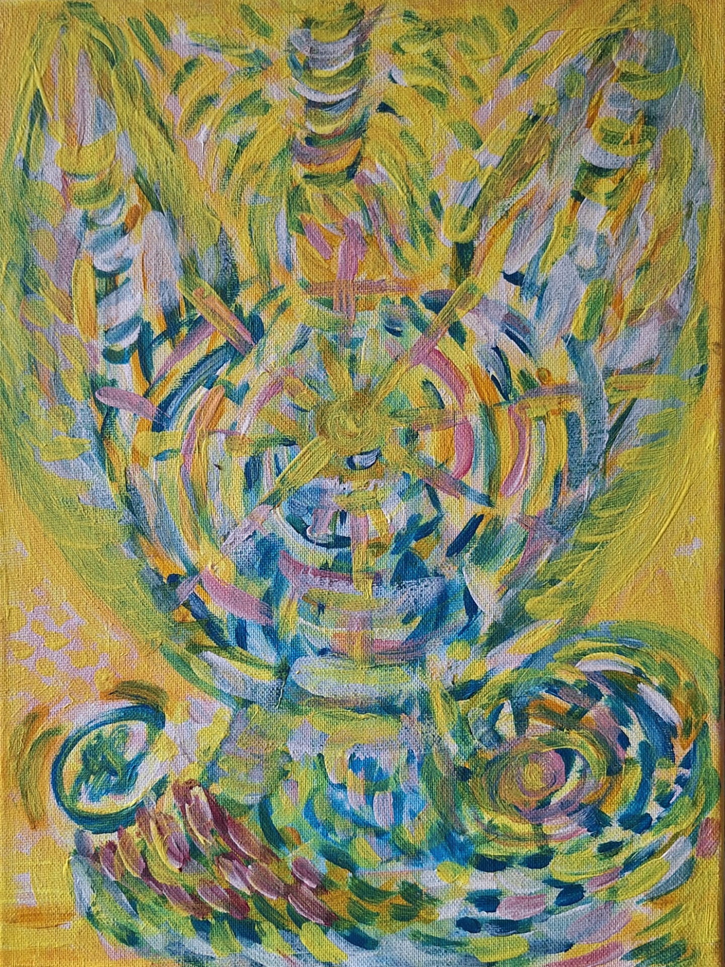 ANDĔL STRÁŽNÝ - na míru- PRODÁNO Acryl na plátně 25x25cm / Možno nakreslit komukoli na míru, v jakémkoli formátu/ Andĕl každého je individuálni. Působi jako osobni ochranný talisman, navibrovává prostor do harmonie a lásky.